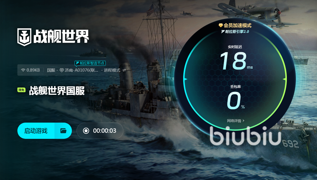 看到這里相信大家就已經(jīng)搞清楚戰(zhàn)艦世界加速器哪個好了吧,有了biubiu加速器的幫助,大家在打開游戲時的載入速度就會有所提升,在對戰(zhàn)過程中也不會因為延遲高而出現(xiàn)走位失誤或射擊延遲等現(xiàn)象,對于提高戰(zhàn)績來說是很有幫助的。