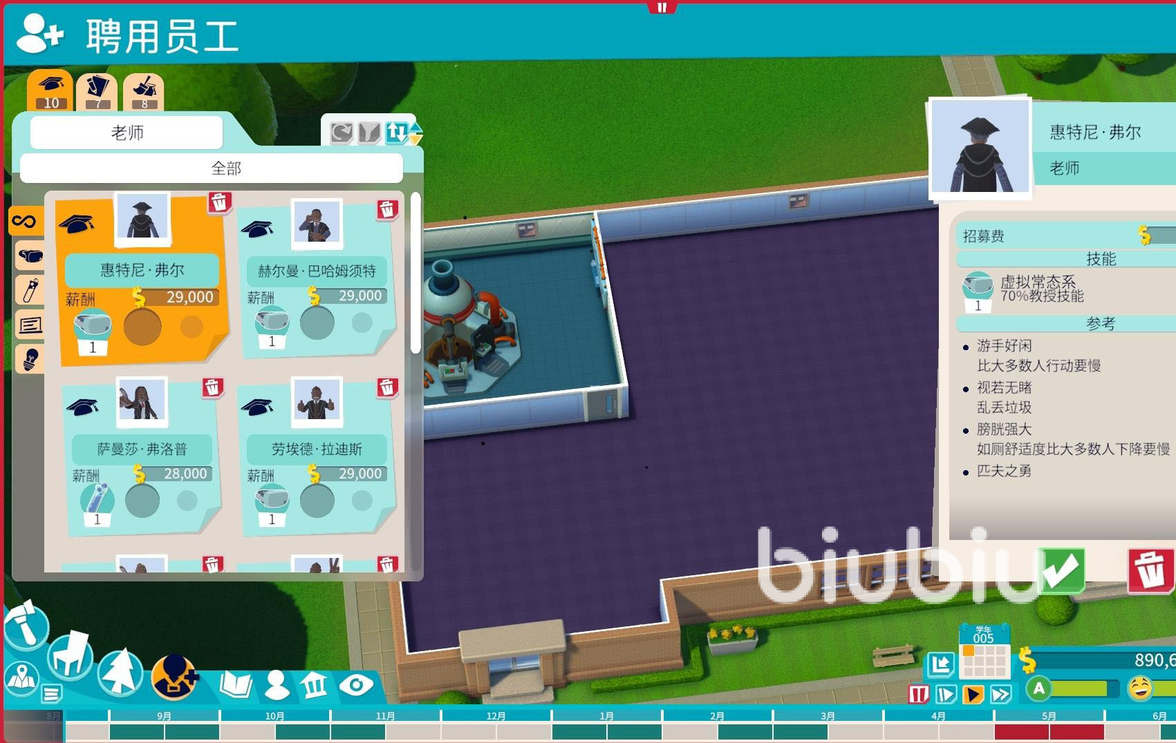 有了教室,那么小伙伴們也應(yīng)該去找一些員工也就是老師來上課了,而老師招募的圖標(biāo)就如下圖所示,同樣位于左下方的位置,與錘子圖標(biāo)中間隔了兩個(gè),點(diǎn)它就能進(jìn)入招聘界面,在這個(gè)界面同樣看到各個(gè)老師顯示在其上;