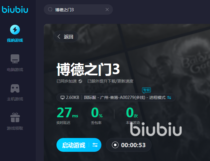 除了給游戲加速,降低延遲外,biubiu也是大家管理游戲賬號的好幫手,這得益于biubiu豐富的游戲資源。大家查找游戲非常方便,除了博德之門3外,全球上萬款游戲也被收錄到biubiu游戲庫當中。大家每次加速完游戲,系統(tǒng)就會自動把它添加到本地游戲里,用戶可以到本地游戲庫管理玩過的游戲。只要重新加速一次就能看到上次玩過的區(qū)服,這樣也方便大家回憶起賬號。
