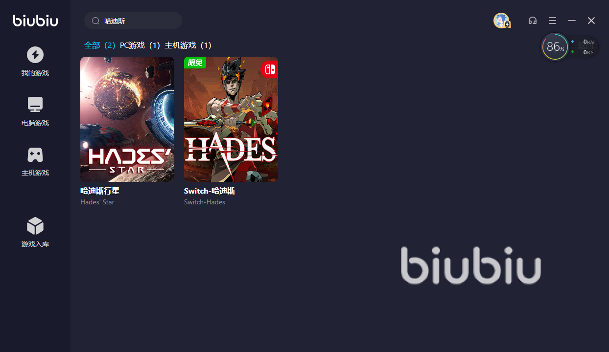 小伙伴們下載好biubiu完成安裝了之后,只需要打開biubiu軟件搜索哈迪斯游戲添加游戲即可,在之后小伙伴們想要啟動(dòng)哈迪斯游戲時(shí)只需在biubiu中找到這款游戲就可以了,十分的簡單,也不需要哈迪斯游戲的玩家們下載或者操縱別的東西進(jìn)行游戲。