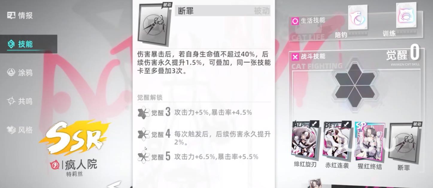 作為一個紅色輸出型的ssr角色,瘋人院有著很高的操作上限,在涂鴉的搭配上,第一個方案就是,小伙伴們可以為其選擇【無畏暴走】,這個與其自身的技能特點正好十分默契,在自身血量被壓以后,它能提供額外的傷害加成,同時能對敵人釋放的debuff進行免疫。