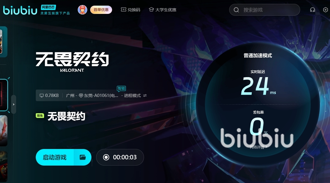 根據(jù)小編所了解的信息,該工具的福利方面還是非常給力的,比如新用戶登陸即可得到24小時免費加速福利,降低延遲,提升技能命中率方面還是很給力的,此外該加速器還能在游戲開始前快速為大家去加載畫面,避免等待期間的掉線,大大的提高玩家的游戲體驗,如果想要獲取更多的加速機會,那么只需去點擊兌換,輸入口令【biubiu不卡頓】便可兌換72h的加速時長。