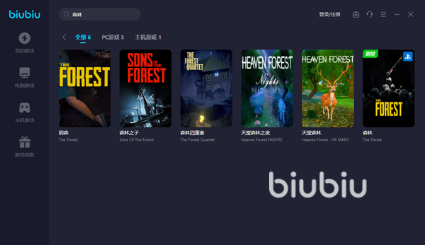 這款軟件的使用方法十分簡(jiǎn)單,點(diǎn)擊文中鏈接下載安裝打開之后可以看到左側(cè)為支持的游戲進(jìn)行了分類,森林同時(shí)登陸了PC和主機(jī)平臺(tái),而biubiu也為這兩種不同的平臺(tái)提供了支持,主機(jī)版更是開啟了限免活動(dòng)。如果大家感覺不知道玩什么游戲好,也可以點(diǎn)擊分類下方的熱門游戲按鈕查看支持的游戲庫,從而在其中挑選自己感興趣的作品。
