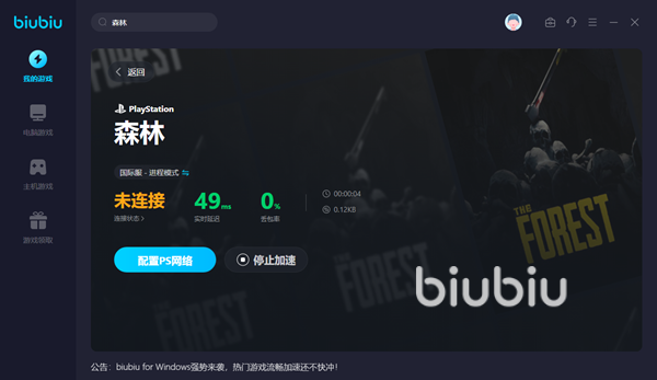 森林為大家構(gòu)建了一個(gè)荒島生存故事和一段發(fā)掘神秘實(shí)驗(yàn)真相的冒險(xiǎn)旅程,在這里你不必孤身一人,而是能夠選擇和自己的好友一起探索詭譎的島嶼、共同應(yīng)對(duì)猝不及防就發(fā)起攻擊的神秘食人族。作為一款以沙盒生存和器械戰(zhàn)斗為核心玩法的精品之作,森林的聯(lián)機(jī)機(jī)制卻讓不少小伙伴叫苦不迭,萬幸的是我們還可以通過使用biubiu加速器來進(jìn)行優(yōu)化和改善,從而獲取穩(wěn)定的聯(lián)機(jī)體驗(yàn)。