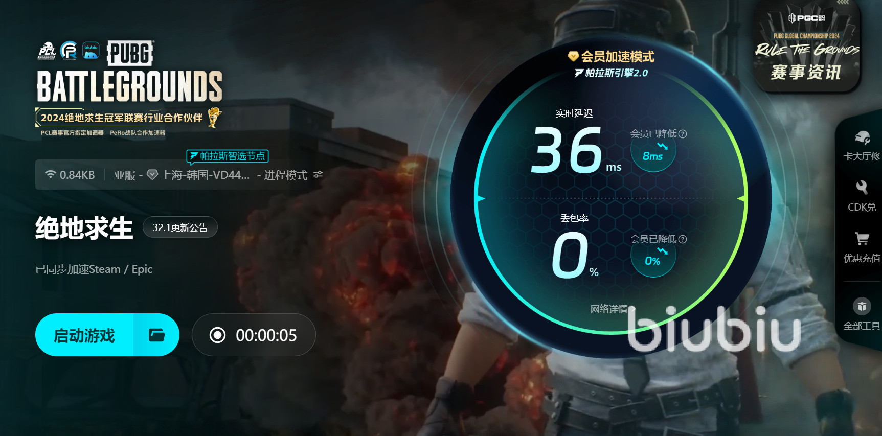 那么有關(guān)pubg卡頓掉幀解決辦法的全部內(nèi)容了,fps類游戲?qū)W(wǎng)絡(luò)要求高,沒有加速器是萬萬不行的,小編已經(jīng)將下載鏈接放在文章開頭了,有需要的朋友點(diǎn)擊按鈕下載biubiu試試吧,別忘了領(lǐng)取免費(fèi)加速時長喲!