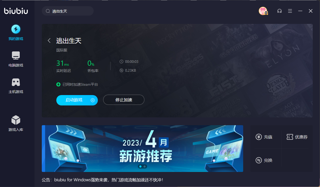 來源: 極光 作者: 罪惡集 2024年03月13日 13:41當(dāng)今,多人聯(lián)機游戲備受年輕人歡迎,因為它們能夠讓好朋友或情侶們共同體驗游戲樂趣。而《逃出生天》就是在這方面非常出色的一款作品。對于逃出升天閃退怎么解決是很多玩家非常關(guān)心的問題。由于游戲玩法的特殊性,對玩家的網(wǎng)絡(luò)環(huán)境提出了相當(dāng)高的要求。游戲開始之前會提醒玩家要求較好的配置,但如果配置不夠高,加速器的加速效果可能可以彌補這一要求。在選擇加速器時,可以考慮使用biubiu加速器。