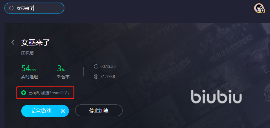 有些同學(xué)可能會吐槽一個問題,那就是如果只能加速“女巫來了”游戲內(nèi)的話,那么在登錄Steam的時候豈不是會很卡?因為平臺登錄和加載也需要加速器,而這個問題就不必多慮啦,玩家們大可在還沒開啟游戲之前就先去把加速器打開,此時下方就會有“同時加速Steam平臺”的字樣,就代表現(xiàn)在Steam和游戲都處于加速狀態(tài)下,是無需再要求用戶單獨(dú)找加速器重新加速的。