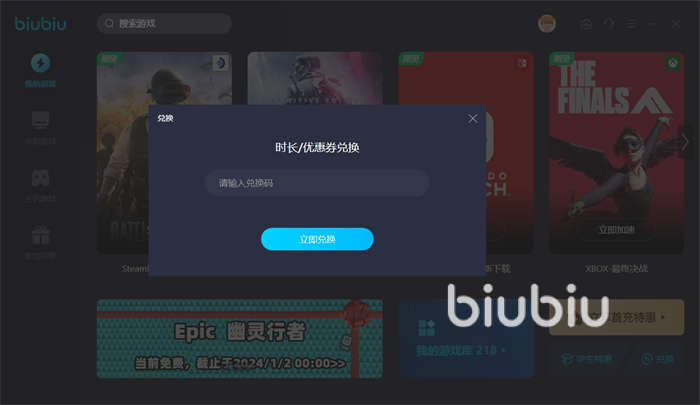 值得一提的是該軟件的福利也十分的給力,尤其是對(duì)于一些剛剛接觸biubiu的新手玩家來(lái)說(shuō),可能還沒(méi)有感受過(guò)游戲加速的效果,所以軟件為新用戶(hù)的帶來(lái)了24h的限免加速,同時(shí)針對(duì)平臺(tái)注冊(cè)的用戶(hù)(不論新老)都可去輸入口令【biubiu不卡頓】來(lái)兌換三天的加速,如此一來(lái)就能確保自己獲得穩(wěn)定的游戲加速效果。
