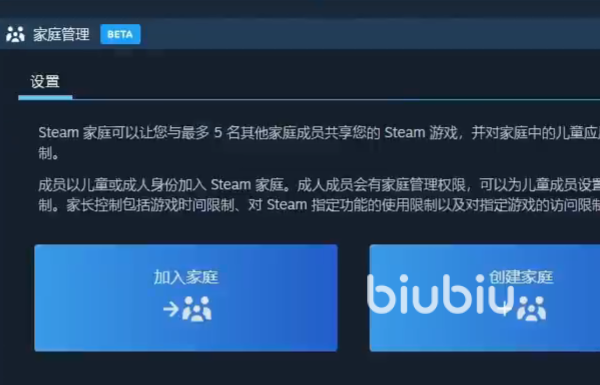首先我們要?jiǎng)?chuàng)建一個(gè)家庭先要點(diǎn)擊右上角自己的頭像,在賬戶明細(xì)里面的家庭管理。這一步可能會(huì)遇到錯(cuò)誤代碼的情況,我們針對(duì)這種情況可以打開(kāi)biubiu加速器,它能讓我們免費(fèi)加速steam的商店與社區(qū),避免大家因?yàn)榫W(wǎng)絡(luò)問(wèn)題無(wú)法登錄steam。