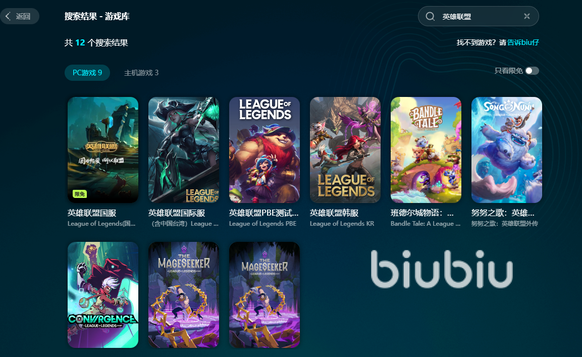 各位拿到這么多的免費(fèi)使用時(shí)間之后,直接就可以點(diǎn)開biubiu首頁的搜索欄,在這里我們通過名稱查找,所有的服務(wù)結(jié)果就會跳出來。游戲提供的平臺是很多的,不過使用最多的就是國服以及國際服了,大家快選擇自己常玩的進(jìn)行加速吧。