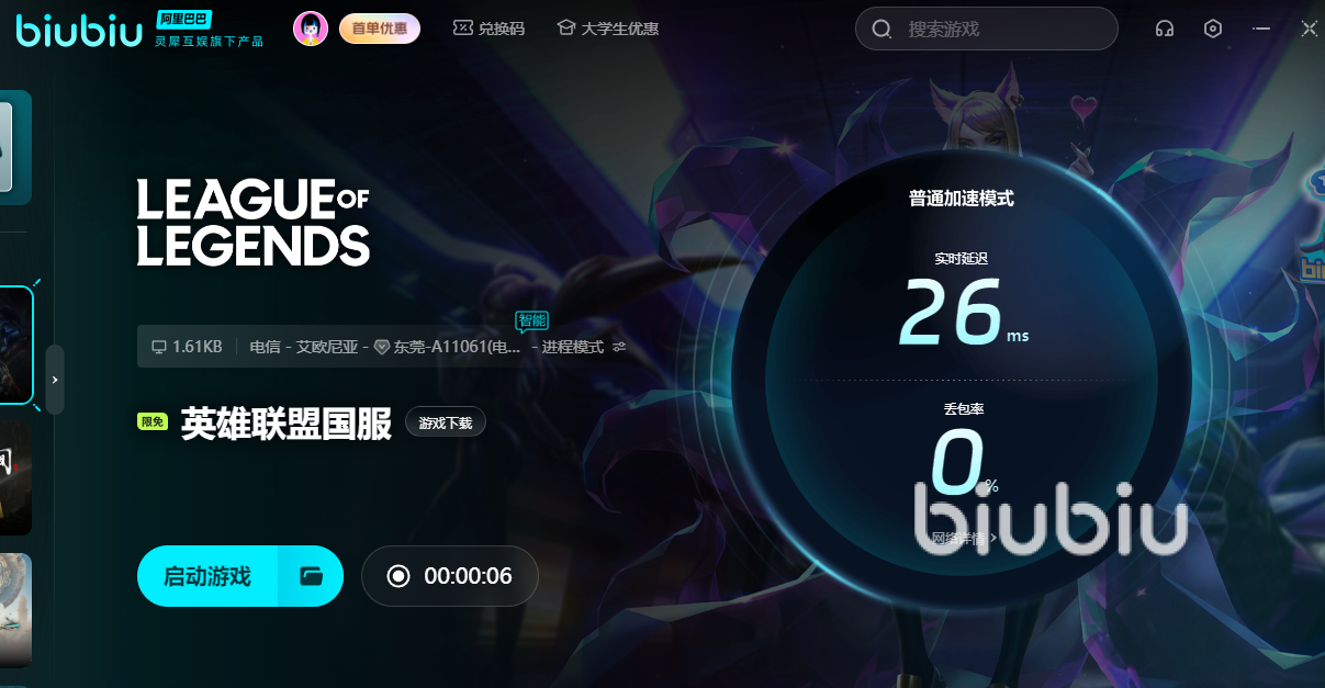 biubiu加速器的功能強(qiáng)大的同時(shí)還全面,很多問題一鍵開啟加速服務(wù)就可以解決了,幫助各位快速,且用最小的代價(jià)解決英雄聯(lián)盟閃退問題。大家要是喜歡玩這款游戲,就不要錯(cuò)過這么好的優(yōu)惠福利,趕緊領(lǐng)取時(shí)間用上吧。