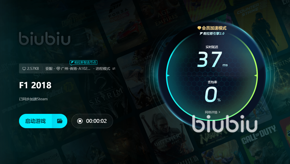 有了加速效果,進(jìn)入游戲之后,就可以感受到延時(shí)是有了很大的改善了,游戲玩起來也就不卡頓了。而且對于賽車游戲來說,幀率是很重要的,是需要有高幀率的,這點(diǎn)biubiu也可以滿足,它可以提高游戲時(shí)的幀率,大家玩起來操作賽車就會更加靈敏,享受賽車的樂趣了。