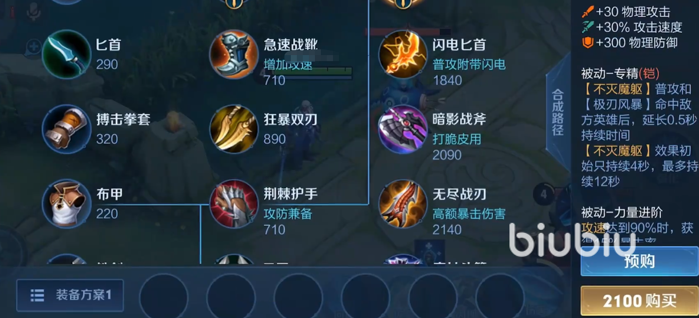 除了可以強(qiáng)化他的大招效果之外,購(gòu)買成型裝備之后,還可以獲得三十點(diǎn)的物理攻擊。還有30%的攻速,以及300點(diǎn)的物理防御值。整體來(lái)看屬性還是很均衡的,既能打又能抗住大量傷害。他還有個(gè)進(jìn)階效果,當(dāng)凱的攻擊速度達(dá)到90%以上的時(shí)候,即可獲得15%的暴擊率。