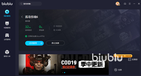 目前PC版本作的主流平臺還是Uplay,所以在biubiu中也是率先對Ubi版進行了加速服務(wù)的開放。大家點擊上方鏈接就能夠下載這款加速工具,打開之后搜索游戲的名稱進入到加速界面,點擊下方的按鈕就可以在很短的時間內(nèi)迅速開啟加速,不需要長時間的等待。如果是新用戶,此前沒有使用過加速器,在注冊登錄之后還可以獲取到免費試用24小時的福利,正好借此之前大家可以了解一下biubiu的操作以及加速效果,然后再決定要不要繼續(xù)使用。