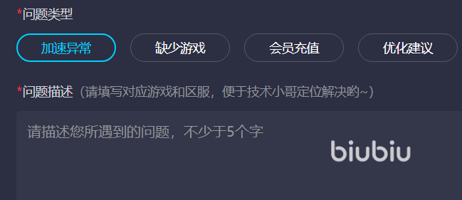 大家在biubiu加速器使用上偶爾會(huì)出現(xiàn)一些問(wèn)題,小編整理歸納了一下,就是加速異常的表現(xiàn)、游戲內(nèi)容的缺少、優(yōu)化建議還有充值問(wèn)題等,那么這時(shí)候大家可以找到右上角的問(wèn)題反饋了,到時(shí)候可以把具體的內(nèi)容寫(xiě)出來(lái),最好還要填上連接方式,方便平臺(tái)后續(xù)的溝通,另外還有一個(gè)問(wèn)題溝通群,大家可以在里面看看處理辦法,基本上大小問(wèn)題都能夠很好地解決。新用戶注冊(cè)免費(fèi)使用加速24小時(shí),老玩家的話可以看看限免游戲,大體就是這樣兩個(gè)福利了。