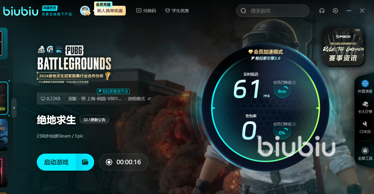 Pubg到了現(xiàn)在仍舊未上線國服,所以想進(jìn)入其他刺激戰(zhàn)場中。我們就得先使用biubiu,才能夠隨著空投包一同進(jìn)入新的吃雞戰(zhàn)地中。新用戶的話,可以領(lǐng)取24H的免費(fèi)加速。另外新老用戶輸入【biubiu不卡頓】,便可額外獲取三天免費(fèi)加速。要是射擊途中過于卡頓,這很容易被對方發(fā)現(xiàn)你的位置并反打。這時可使用加速器,就能拒絕卡頓,讓你輕松瞄準(zhǔn)并擊中對方。