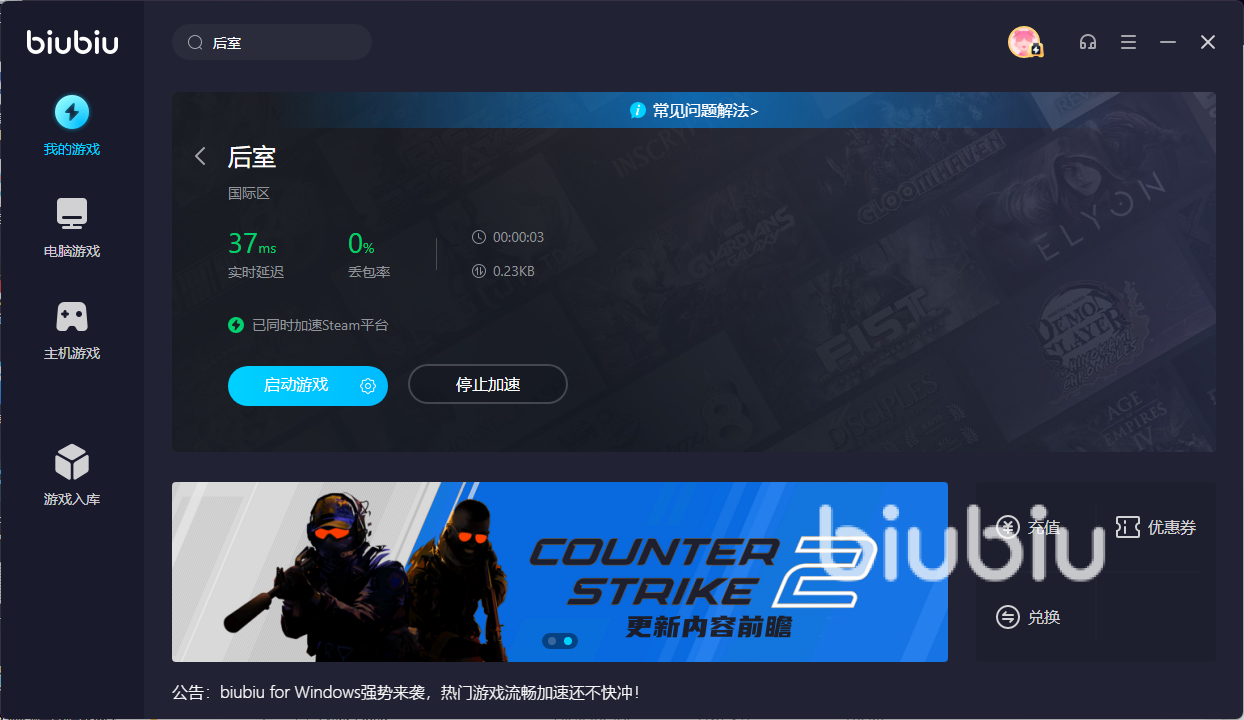 使用biubiu加速器加速《后室》是提升游戲體驗(yàn)的最佳選擇。biubiu加速器通過(guò)優(yōu)化網(wǎng)絡(luò)連接,降低延遲和丟包率,確保您在游戲中獲得更穩(wěn)定、更流暢的性能。您將能夠更快地反應(yīng),更準(zhǔn)確地執(zhí)行操作,并享受到逼真的游戲畫面和令人驚心動(dòng)魄的恐怖體驗(yàn)。不僅如此,biubiu加速器還為您提供全天候的技術(shù)支持,保證您在使用過(guò)程中的順暢與安全。