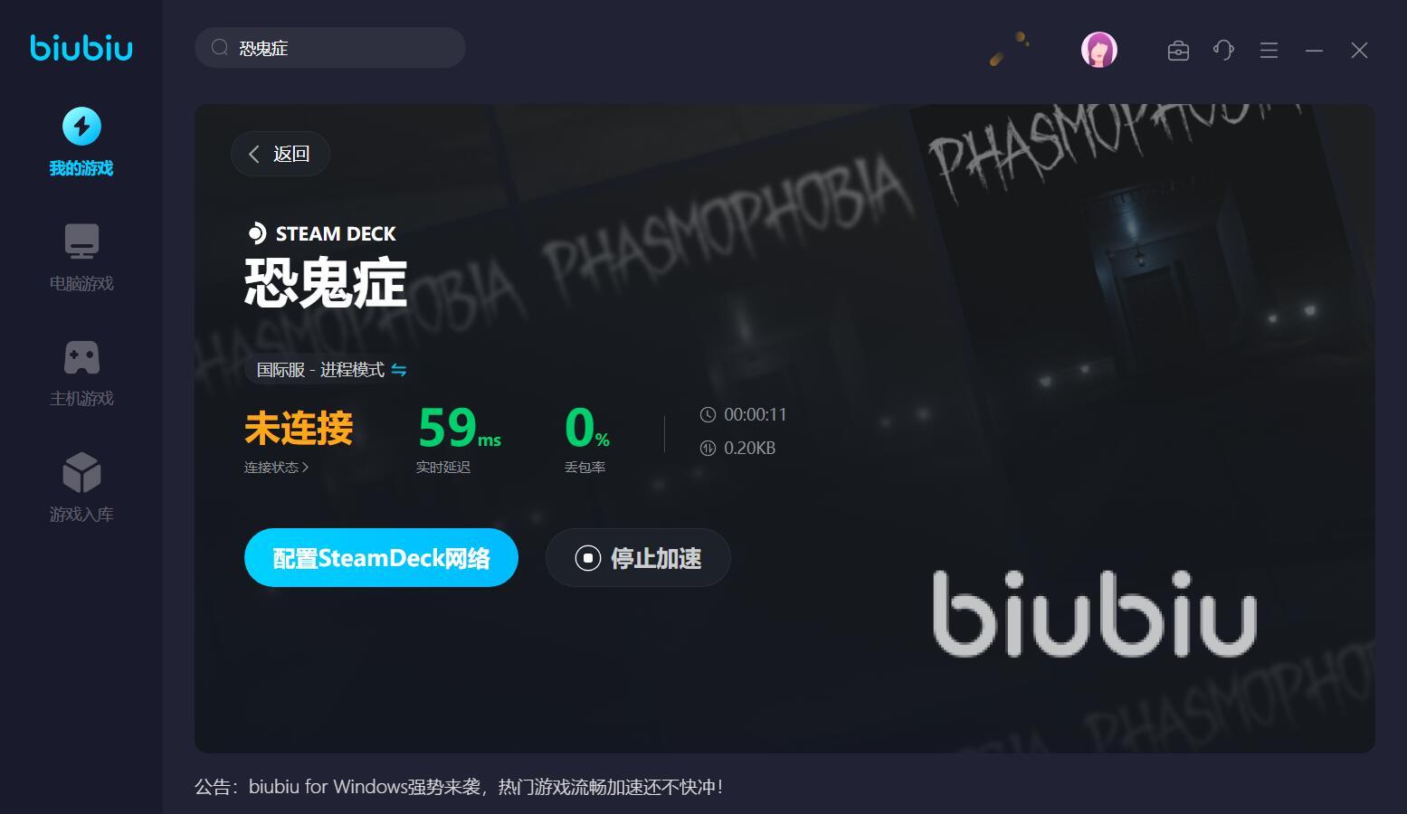 以上就是恐鬼癥聯(lián)機為什么進不去,與傳統(tǒng)的以鬼為主題的游戲相比,制作團隊革新了玩法,把鬼作為一個探索元素放到了游戲內(nèi),玩家不用進行直接對抗,發(fā)現(xiàn)它之后,就能完成任務,這個玩法十分新穎。如果你想流暢地體驗這個游戲,那么可以用biubiu加速器去進行網(wǎng)絡優(yōu)化。