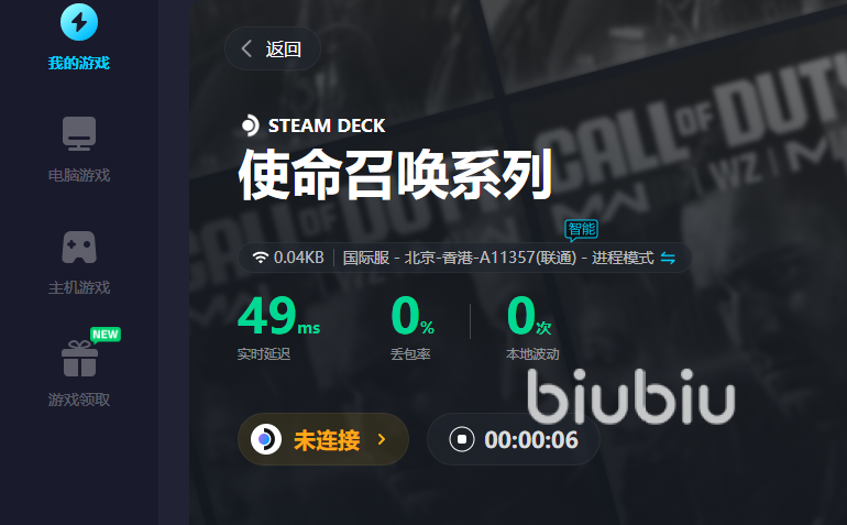 在最新的多人模式中游戲取消了滑鏟動(dòng)作的后搖,并且在做這個(gè)動(dòng)作的同時(shí)可以進(jìn)行開(kāi)槍射擊,而biubiu不僅可以讓游戲本身的網(wǎng)絡(luò)有一定的流暢穩(wěn)定,在加速頁(yè)面還可以查看到游戲的丟包率和本地波動(dòng)次數(shù)。