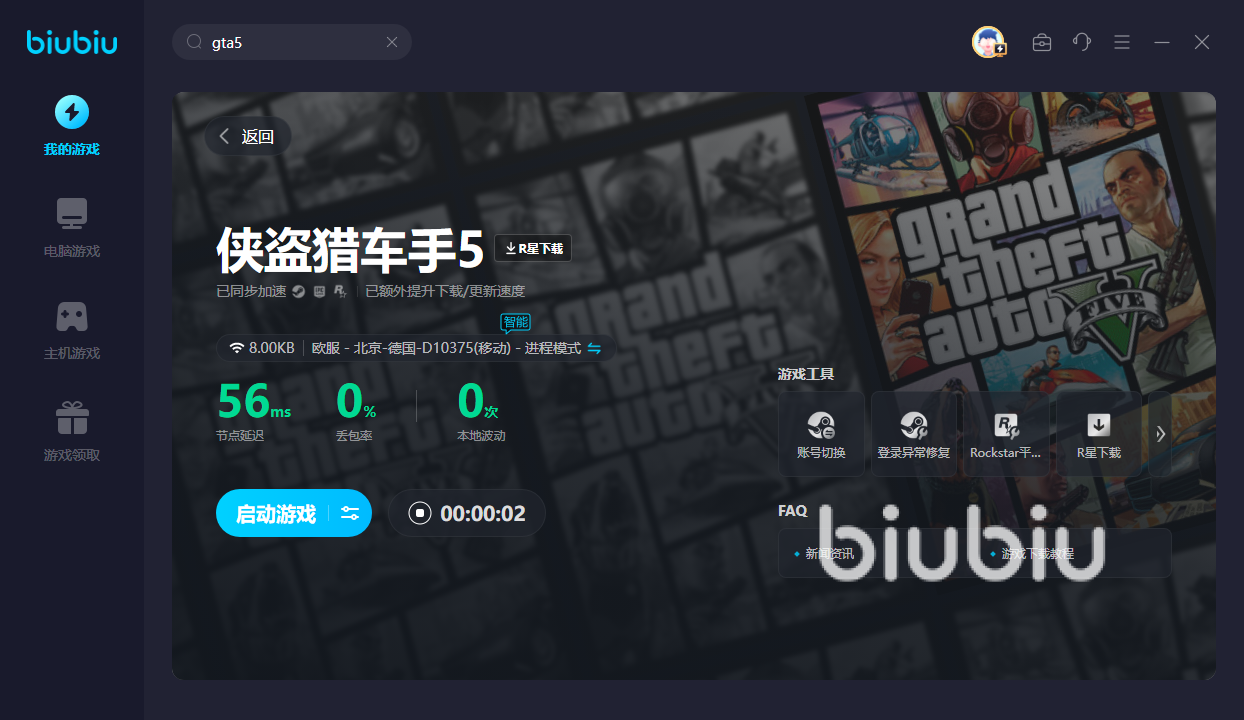 來(lái)源: 極光 作者: Roran 2024年03月13日 16:05Gta5雖然好玩,但不少寶子經(jīng)常遇到各種問(wèn)題,尤其是gta5一進(jìn)去就卡住怎么辦?其實(shí)一進(jìn)去之所以卡住,主要是因?yàn)闆](méi)用上biubiu,有了它即可成功將網(wǎng)絡(luò)環(huán)境變好,從而令你可一步登陸進(jìn)去,而不是出現(xiàn)卡住的情況。畢竟gta5里的游戲畫(huà)面非常龐大、精美,沒(méi)加載出來(lái)的話自然會(huì)卡住。