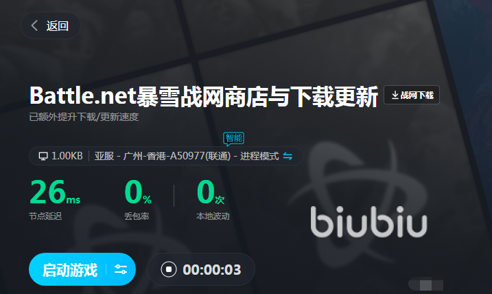 我們打開biubiu加速器,在搜索框里面輸入暴雪戰(zhàn)網(wǎng),這樣便會(huì)出現(xiàn)Battle.net暴雪戰(zhàn)網(wǎng)的商店了,啟動(dòng)智能加速后可以優(yōu)化電腦本地網(wǎng)絡(luò)的環(huán)境,解決國(guó)際服務(wù)器可能會(huì)斷網(wǎng)的問題。同時(shí)可以減少數(shù)據(jù)包丟失,確保游戲連接的穩(wěn)定性,幫助我們順利連接到對(duì)應(yīng)的服務(wù)器。