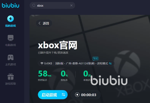 為保證biubiu能給Xbox云游戲提供網(wǎng)絡(luò)加速服務(wù),小編用Xbox平臺體驗了biubiu的網(wǎng)絡(luò)加速效果。它的操作使用方便,只需登錄平臺搜索Xbox,就可以一鍵開啟網(wǎng)絡(luò)加速,而且隨用隨開,非常方便。