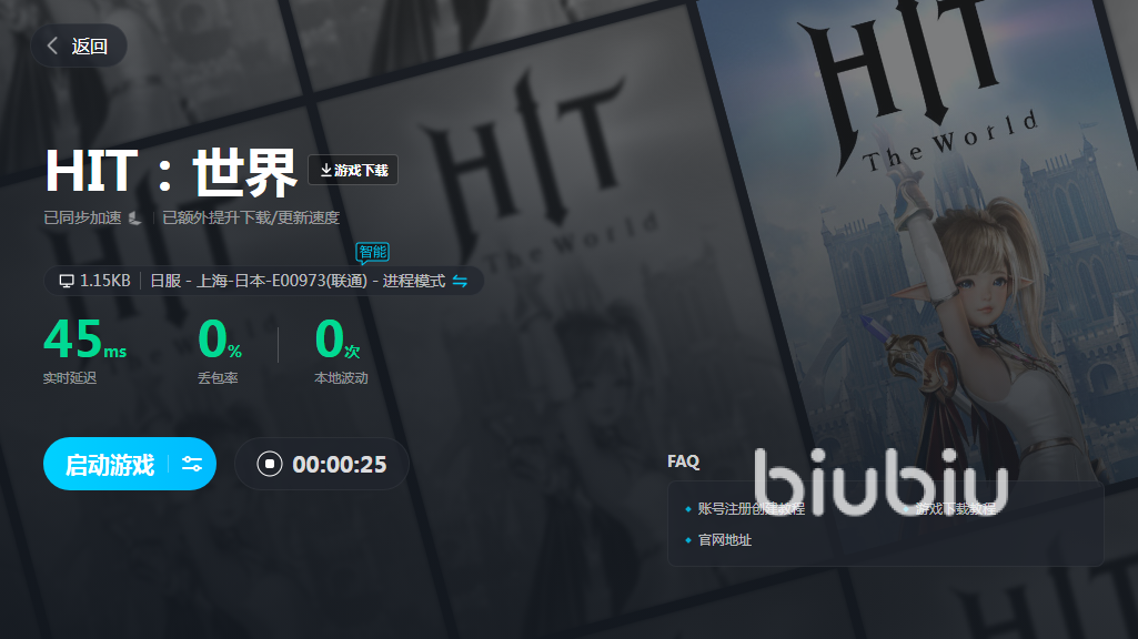 HIT世界這個游戲雖然好玩,但是想要玩好,肯定是少不了一個好用的加速器來幫助優(yōu)化跟穩(wěn)定網(wǎng)絡的,而小編現(xiàn)在也推薦了biubiu給大家認識了,各位現(xiàn)在就可以用起來,看看效果如何了。相信只要使用過,它的優(yōu)秀加速效果會讓各位滿意的。