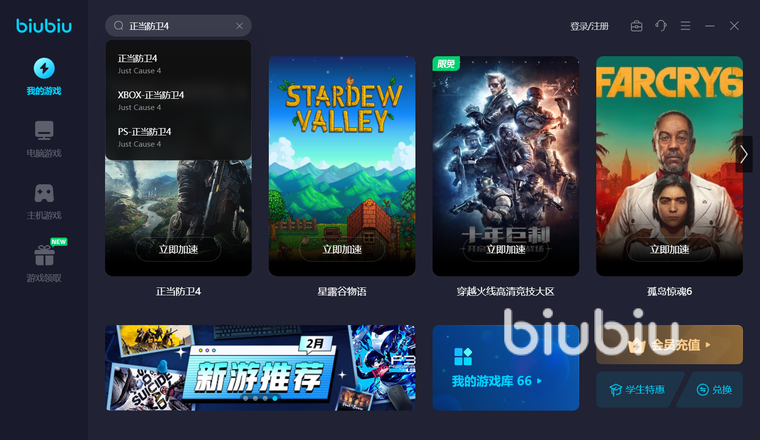 第三步,完成加速。biubiu軟件搜索框中輸入名稱,玩家們找到正當(dāng)防衛(wèi)4,從外服中找到自己對(duì)應(yīng)的服務(wù)器,選擇模式,一鍵加速。