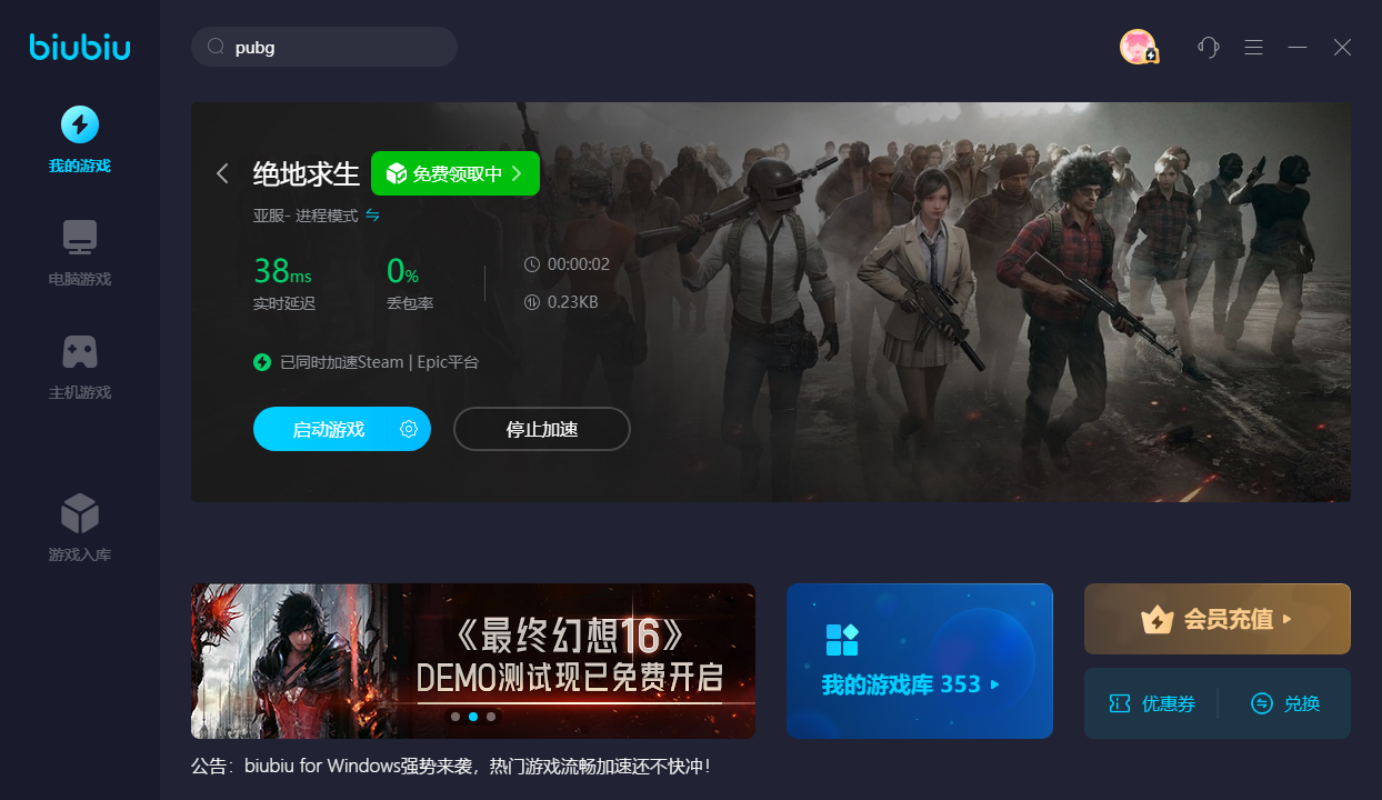 來(lái)源: 極光 作者: Mo 2023年06月30日 15:28作為曾經(jīng)吃雞類游戲的鼻祖絕地求生很多玩家都非常的熟悉,目前有很多的新手玩家想要加速,紛紛過(guò)來(lái)咨詢小編pubg端游需要加速器嗎?玩游戲的人數(shù)比較多,一時(shí)間蜂擁會(huì)給服務(wù)器造成很大的壓力,加上網(wǎng)絡(luò)環(huán)境不那么穩(wěn)定,總會(huì)讓人遇到各種各樣的問(wèn)題,所以建議大家游戲的時(shí)候使用biubiu加速器來(lái)緩解下,如果你也需要的話,跟著小編一起來(lái)看看吧。