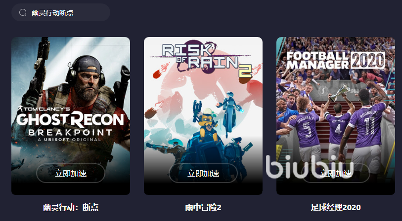 接下來需要小伙伴們?nèi)ニ阉鲗?yīng)的游戲名,要知道它該加速器里面為大家準(zhǔn)備了很多不同類型的游戲,為了能更好地去進(jìn)行使用加速服務(wù),所以大家還是搜索它來的快捷,并且在下方就會(huì)有加速的字眼。