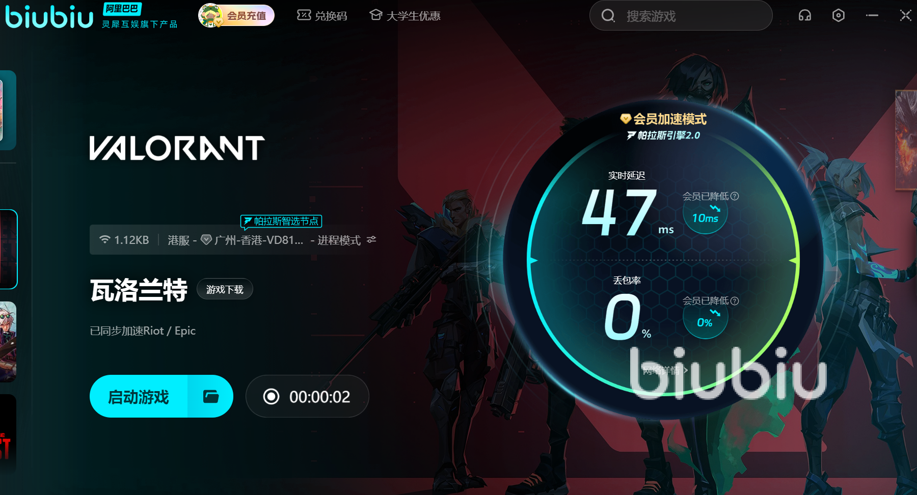 瓦洛蘭特在開局之前玩家是可以選擇不同英雄來組成強(qiáng)力陣容的,這樣在面對(duì)敵方陣營的時(shí)候會(huì)具有更多的優(yōu)勢(shì),在對(duì)戰(zhàn)過程中需要利用不同英雄的技能來造成強(qiáng)大的傷害,從而快速拿下點(diǎn)位,每個(gè)人都是比較重要的,但是部分玩家的網(wǎng)速情況不太好,經(jīng)常掉線,導(dǎo)致團(tuán)戰(zhàn)的時(shí)候只有四個(gè)人,這直接導(dǎo)致團(tuán)戰(zhàn)的失敗率大大增加,還容易受到隊(duì)友的舉報(bào),而為了避免這種情況,使用biubiu加速器是不錯(cuò)的選擇,并且新人在注冊(cè)后便獲24小時(shí)免費(fèi)加速,以及新老用戶使用兌換碼【biubiu不卡頓】可獲3天免費(fèi)的使用時(shí)間哦!