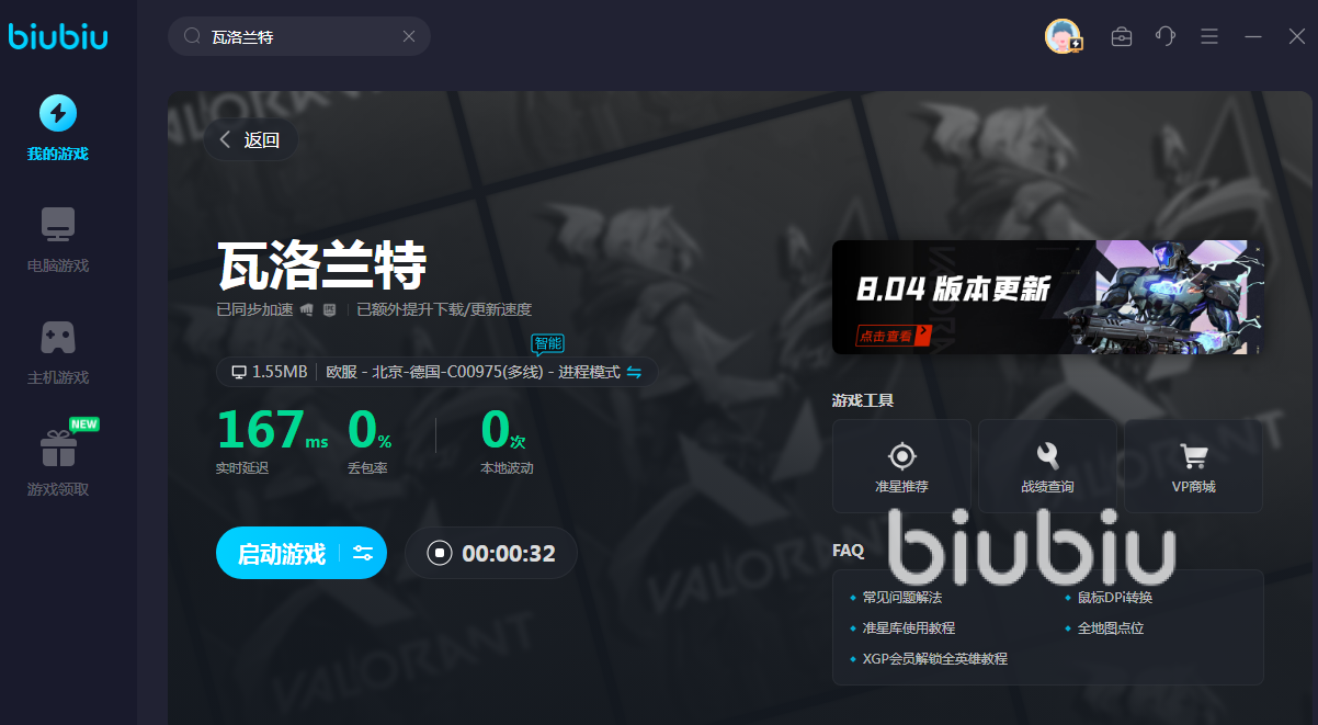 biubiu收錄了瓦洛蘭特日服、港服、歐服等多個區(qū)服,想玩哪一個只要選擇以后啟動加速就可以了。它里面還有其他游戲資源,這些游戲都獲得正規(guī)授權(quán),可以放心加速來玩。如果在軟件里找不到想玩的游戲,可以向客服反映,也可以在系統(tǒng)里面登記一下,biubiu會盡快處理把游戲添加進來。