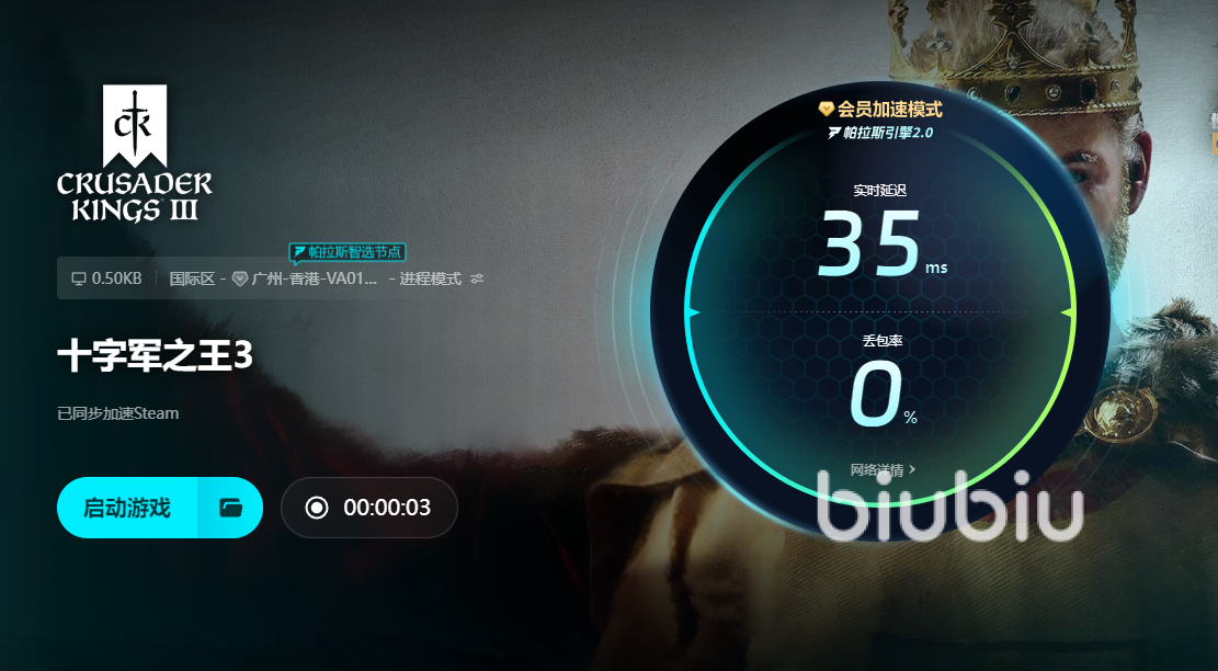 十字軍之王3閃退解決辦法大家看完小編的介紹,應(yīng)該知道了就是用biubiu進(jìn)行一鍵加速就行了,很方便的。biubiu的服務(wù)不只是這些,如果各位是剛接觸到這款游戲,還沒有下載,開啟加速之后,下載速度也會(huì)提升500%,收益還是很大的。