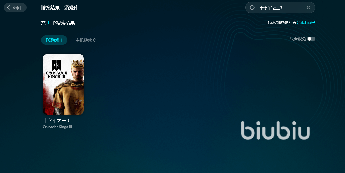 biubiu的游戲庫是龐大的,如果各位喜歡玩其他游戲,在這里也可以嘗試找下加速服務(wù),在右上角的搜索欄輸入名稱一般都可以查找到的,如果真的找不到,而這款游戲的確也是已經(jīng)上線的游戲,就可以點(diǎn)擊告訴biu仔,提出這個(gè)加速請求哦。