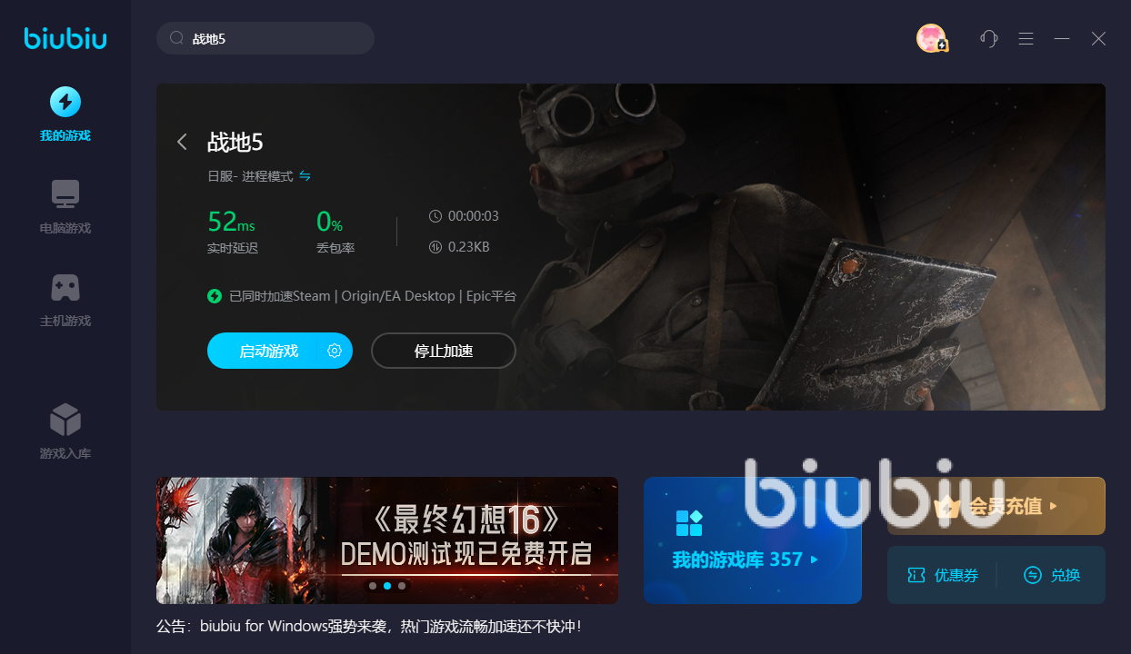 其實(shí)不止是戰(zhàn)地5,經(jīng)常玩外服游戲的小伙伴們應(yīng)該都知道,很多很好玩的外服游戲咱們國內(nèi)玩家下載游玩都會出現(xiàn)網(wǎng)絡(luò)遲鈍的問題。而因?yàn)閎iubiu加速器的海外節(jié)點(diǎn)眾多,所以咱們在玩這些外服游戲時(shí)使用biubiu加速器加速游戲輔助運(yùn)行是最好的選擇,能夠讓咱們暢通無阻的體驗(yàn)各種外服游戲。