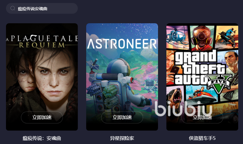 小編也是知道,許多朋友對瘟疫傳說安魂曲進(jìn)不去游戲怎么辦是不了解的,想要去解決這個難題其實(shí)也很簡單,那就是去下載一個biubiu加速器來運(yùn)行游戲即可,不僅能有效的優(yōu)化網(wǎng)絡(luò),同時也會讓大家的游戲體驗(yàn)變得更好,所以喜歡的朋友就不要錯過了。