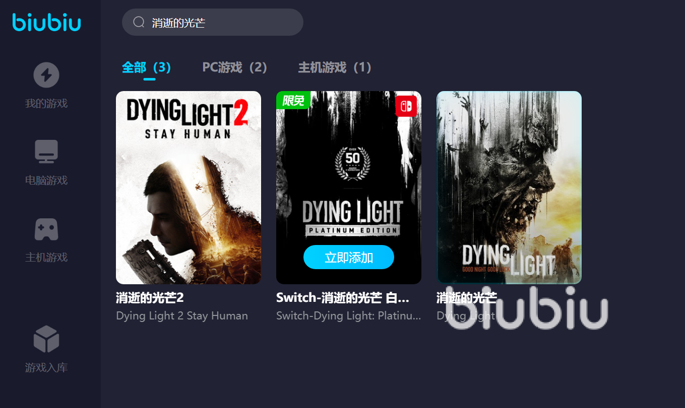 因?yàn)檫@個(gè)游戲是一個(gè)海外的網(wǎng)游,我們的距離與消逝的光芒服務(wù)器距離比較遠(yuǎn)的時(shí)候,數(shù)據(jù)傳輸?shù)木嚯x和時(shí)間會(huì)大大延長(zhǎng),在傳輸?shù)倪^(guò)程中,如果網(wǎng)絡(luò)出現(xiàn)丟包或者出現(xiàn)延遲的情況,會(huì)對(duì)游戲帶來(lái)很大影響,數(shù)據(jù)丟包很可能會(huì)造成游戲內(nèi)玩家進(jìn)程丟失。所以我們可以提前將biubiu安裝好,如果第一次使用的話,我們享受到24小時(shí)的免費(fèi)會(huì)員,可以任意體驗(yàn)各種游戲,當(dāng)然,消逝的光芒游戲也包含在其中。之后直接搜索,找到就能夠看到當(dāng)前平臺(tái)所支持的這款游戲,大家可以發(fā)現(xiàn),對(duì)于初代版本和第二代biubiu加速器都可以實(shí)現(xiàn)對(duì)他們加速。