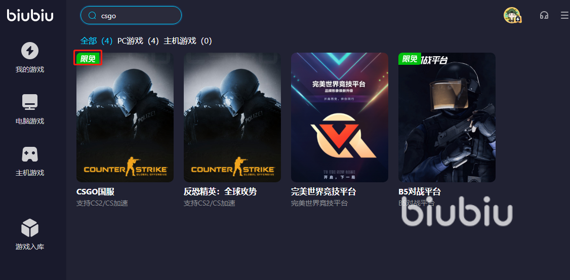 如果是在玩csgo國(guó)服的同學(xué)目前可在biubiu加速器中“免費(fèi)”體驗(yàn),最近一段時(shí)間大部分國(guó)服游戲都可直接免費(fèi)加速,不過(guò)這項(xiàng)福利可不是一直都有的哦,只能說(shuō)搶先下載就能搶先體驗(yàn),除了國(guó)服之外,現(xiàn)在對(duì)Steam平臺(tái)和暴雪平臺(tái)進(jìn)行加速也是直接免費(fèi)的,這項(xiàng)福利放在任何一個(gè)平臺(tái)都很稀有,更何況它還對(duì)從來(lái)沒(méi)有注冊(cè)過(guò)biubiu注冊(cè)器的同學(xué)還會(huì)有24小時(shí)的免費(fèi)會(huì)員贈(zèng)送,這個(gè)會(huì)員和普通會(huì)員完全一致,只要是有的游戲都能加速。
