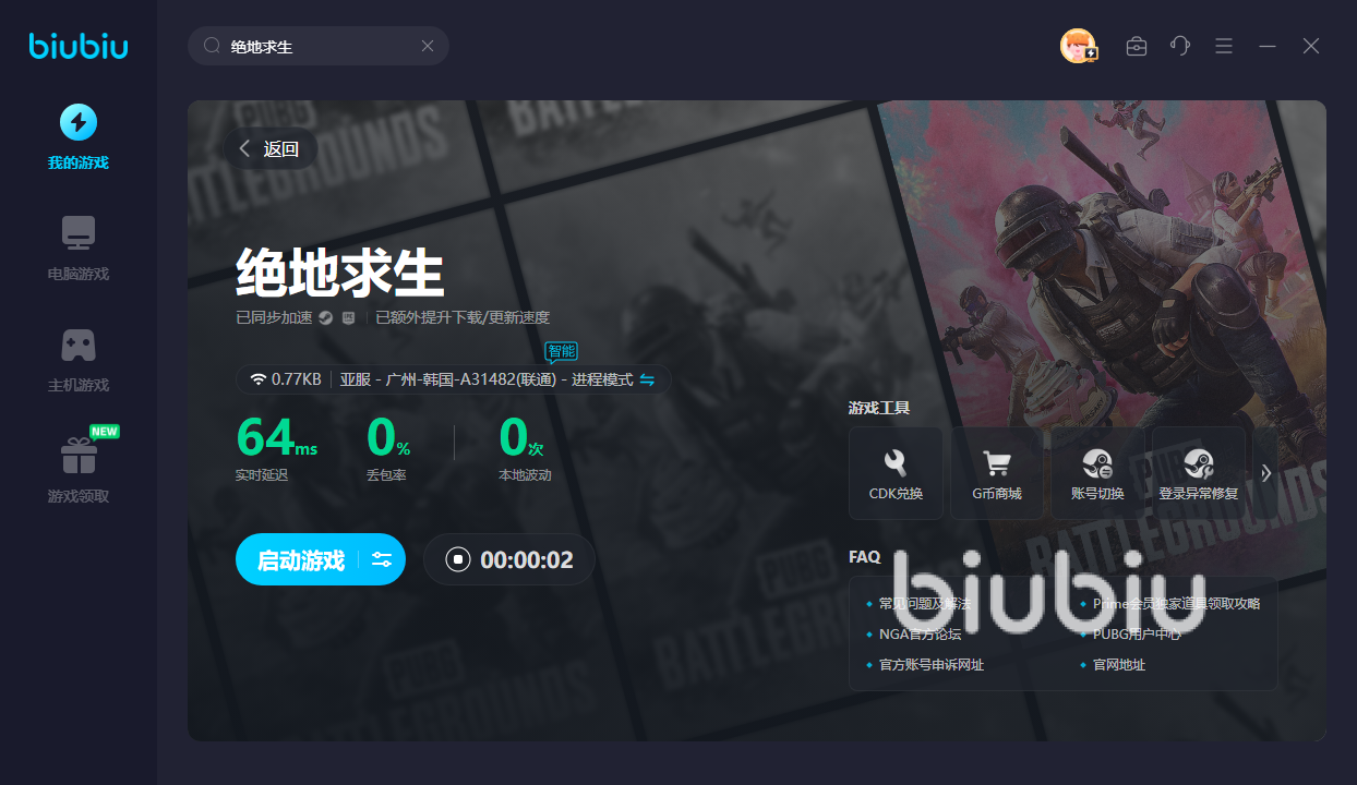 想要真正開啟戰(zhàn)爭的話,還需借助biubiu,即可優(yōu)化網(wǎng)絡(luò)后登錄。因?yàn)榻^地求生目前仍舊未上線國服版本,就得提速過后才能有資格進(jìn)入戰(zhàn)場。新用戶的話還能領(lǐng)取24H的免費(fèi)加速,此外新老用戶都能使用【biubiu不卡頓】,即可享受三天免費(fèi)加速。若是競技過程中太卡的話,很容易被對手找到你的破綻并擊殺。此刻有了biubiu后,就能解決卡頓問題,不管什么操作都能輕松完成,讓對手不能發(fā)現(xiàn)你的弱點(diǎn),才能及時地脫身。