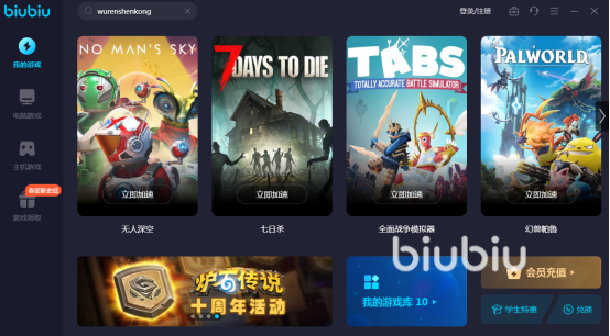 來(lái)源: 極光 作者: 乖乖乖呀 2024年03月19日 11:11無(wú)人深空一經(jīng)推出就備受好評(píng),可以讓玩家在太空當(dāng)中冒險(xiǎn),游戲的過(guò)程當(dāng)中,玩家可扮演宇航員,探索未知的宇宙世界,這游戲有重重危機(jī),如果經(jīng)常掉線,肯定會(huì)影響游戲體驗(yàn)。那么無(wú)人深空掉線是什么原因呢?根據(jù)諸多玩家的經(jīng)驗(yàn),很大程度上都是由于網(wǎng)絡(luò)延遲卡頓造成的,所以今天給大家介紹一下可以優(yōu)化網(wǎng)絡(luò),解決因?yàn)榫W(wǎng)絡(luò)而造成掉線問(wèn)題的biubiu加速器。
