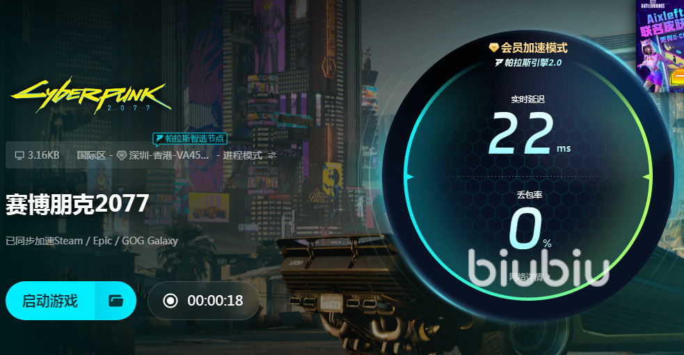 小編極力推薦biubiu,因為它加速夠?qū)I(yè),支持的游戲夠多,還能免費試用,在注冊完新用戶后系統(tǒng)自動增加24小時免費加速時長。有了免費時長,在找到賽博朋克2077加速資源以后就能馬上開啟加速,享受快樂游戲時光。