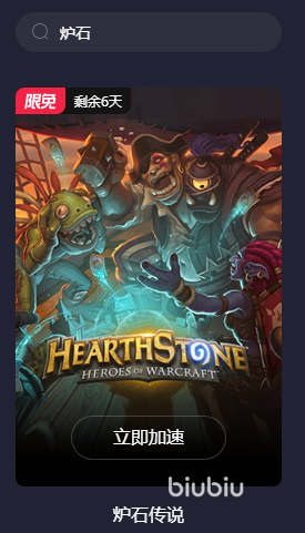 首先,目前市面上的各大加速器是非常多的,而玩家們可能不知道如何進行選擇,尤其是還沒有使用過加速的一類玩家。所以在這樣的情況下,大家就更需要使用專業(yè)的加速器才行,所以小編才在這里建議大家考慮使用biubiu加速器。該平臺支持的游戲類型豐富,剛好也針對爐石傳說提供了專門的加速節(jié)點,各位也能夠通過加速之后去獲得更好的游戲體驗。