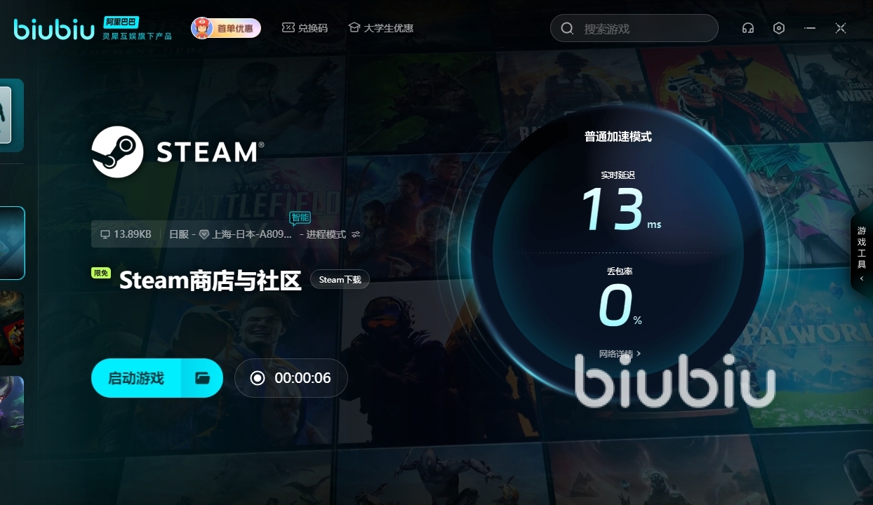 在使用期間,玩家更是能得到多種不同的福利,比如新用戶首次登錄,即可解鎖24h的限免加速,到時(shí)候無(wú)需充值即可體驗(yàn)到該軟件的加速效果,同時(shí)大家還可輸入口令【biubiu不卡頓】,這樣就能額外獲得72h的加速,這一福利不僅面向新用戶,平臺(tái)的老用戶同樣是能夠去領(lǐng)取的,而對(duì)于新用戶而言,這些福利疊加后,總計(jì)可獲得96h的免費(fèi)加速。