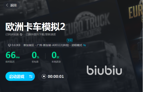 推薦小伙伴們可以試用一下biubiu加速器,它不僅支持多款熱門游戲的一鍵加速,而且還有歐洲卡車模擬2的專項加速界面,只需要在搜索框中輸入名字,就能找到并啟動。并且平臺還提供了大量游戲的實時資訊,玩家們可以自行查看,和其他玩家一起探討游戲中遇到的問題。