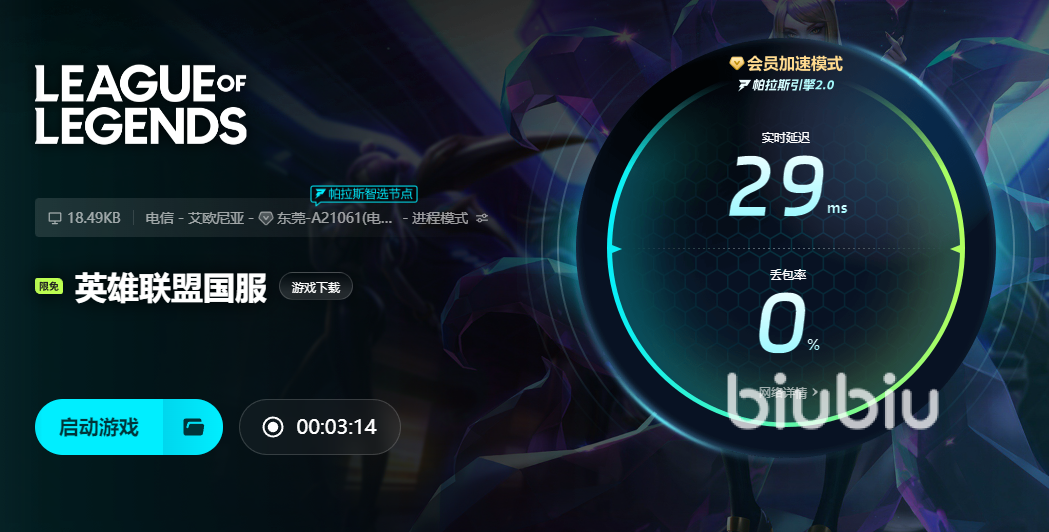 一般來說,lol如果出現(xiàn)掉幀或者高PIN情況的發(fā)生一般都是因為網(wǎng)絡(luò)的問題,比如原本玩家的服務(wù)器是在網(wǎng)通,但是使用的線路轉(zhuǎn)到了電信,這樣的話在游玩的時候就很容易出現(xiàn)掉幀的情況,想要解決的話玩家們就需要使用加速設(shè)備才可以。當(dāng)下biubiu是比較好用的加速工具,它獨(dú)有的電競級線路可以降低游戲的各類延遲。新用戶可以享受24小時的免費(fèi)加速,使用兌換碼【biubiu不卡頓】的話還可以額外獲取3天加速。