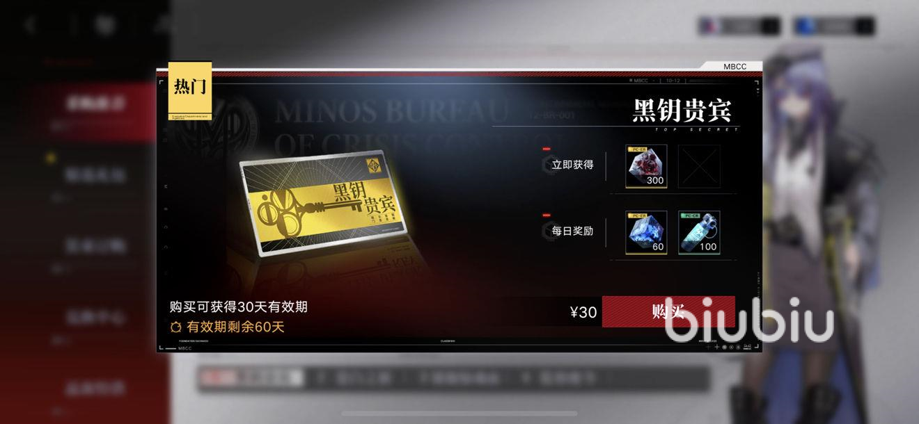 2、月卡:購(gòu)買(mǎi)月卡直接給300付費(fèi)點(diǎn),可用于購(gòu)買(mǎi)皮膚等道具。每日還能固定領(lǐng)取60異方晶和100體力,這樣一個(gè)月就能領(lǐng)取1800。對(duì)于前期需要沖擊的玩家來(lái)說(shuō),體力也非常的重要。