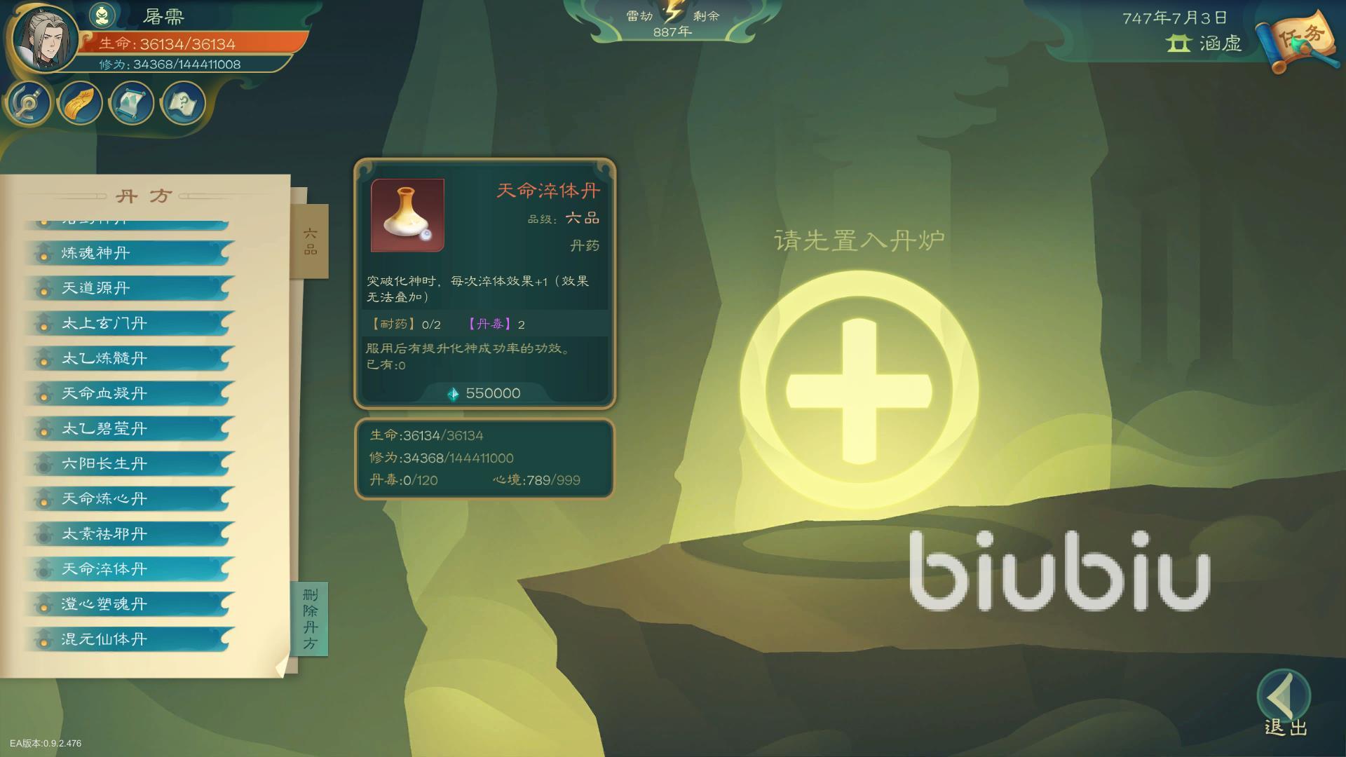 天命淬體丹的丹方是兩顆地心淬靈乳,輔藥可以是兩個丹靈果或者6顆重元換血草,藥引是一顆八角玄冰草;藥效是突破化神時,每次淬體效果+1(效果無法疊加),除了換血草是五品外,其余材料都是六品。