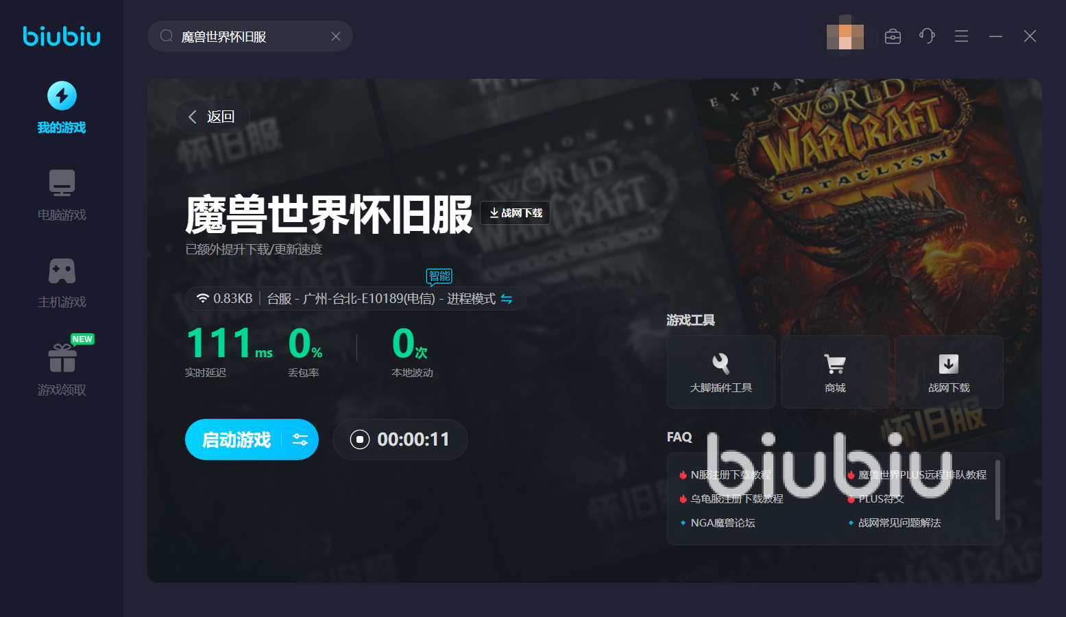 來源: 極光 作者: 大王 2024年04月07日 17:20不少的小伙伴都體驗(yàn)過魔獸世界懷舊服,而且也都覺得這是經(jīng)典中的經(jīng)典了,但不少的玩家都反映在體驗(yàn)過程中有卡頓跳屏現(xiàn)象,所以下面的內(nèi)容小編為大家介紹魔獸世界懷舊服卡頓跳屏怎么解決,想要很好的解決游戲卡頓和跳屏等現(xiàn)象大家就需要有一個加速器作為輔助,而biubiu加速器就是同類軟件當(dāng)中非常不錯的一款了,口碑也非常好,能夠有效的解決大家在體驗(yàn)過程中遇到的各種網(wǎng)絡(luò)現(xiàn)象。