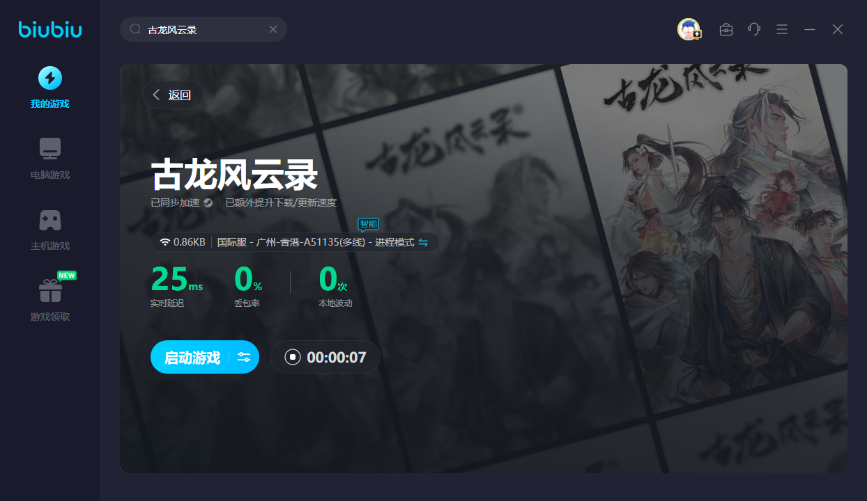 雖然古龍風(fēng)云錄是國風(fēng)游戲,但目前PC端暫且木有國服,所以為了進(jìn)入更開闊的海外江湖。大家就得使用biubiu,加速過后即可進(jìn)入古龍筆下的武俠世界里。然后新人可領(lǐng)取24H的免費(fèi)加速,此外新老用戶還可通過【biubiu不卡頓】,額外享受三天免費(fèi)加速。讓大家可在江湖里面縱橫更長一段時(shí)間,從而將自己的武藝磨煉的更佳。剛開始時(shí)江湖里危機(jī)四伏,若是太卡頓的話,一個小怪都能把人拍死。好在加速器的提速效果非常好,可防止卡住,讓你提前預(yù)判敵人的攻擊并化解。