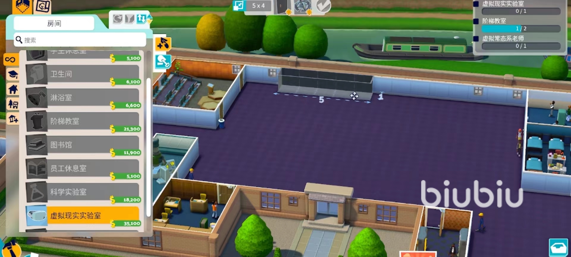 點擊左下角的錘子,點擊科學實驗室的建筑物,將其在校園內(nèi)完成建造。面積盡量選小一點,科學合理的規(guī)劃校園的布局。實驗室建造好以后,還需要安裝黑板、門、試驗儀三樣必備組件,實驗室才能投入使用。